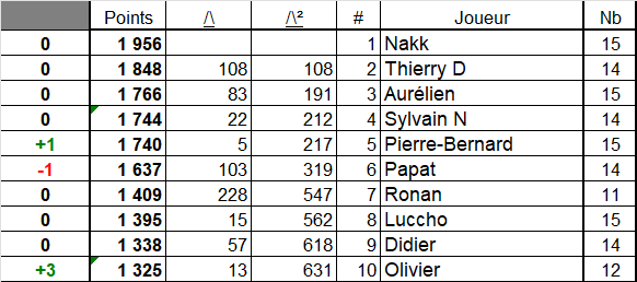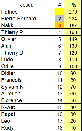 Un grand bravo à Patrice qui termine premier de cette dernière partie devant Pierre Bernard, éternel runner up!!