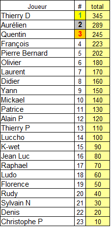 Je félicite Thierry D pour cette cinquième victoire en Aspt, la première cette saison. Une belle victoire face à Aurélien on fire, et Quentin, longtemps cheap leader en TF.
